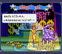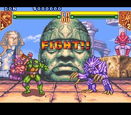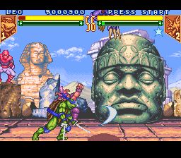 忍者神龟:变种战士 (Teenage Mutant Ninja Turtles – Tournament Fighters) SFC的忍者神龟格斗,系统做得十分严谨,招式华丽,完全可以媲美街机的格斗了。对于喜爱SFC游戏的伙伴们试玩倒是个不错的选择,很不错的怀旧游戏,值得推荐,希望大家好好享受游戏带来的快乐。