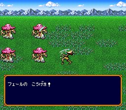 游戏的战斗也蛮有特色,属于横向卷轴式回合制。在常规RPG前排后排的基础上,人物肉搏时候还得向前移动到敌人面前才能进行攻击。由此较以往回合制多了些新玩法,既可卡位,也能根据敌我速度判断出击时机。可惜的是只能如同象棋中的兵卒一般,只许前进不准后退,否则或会有更多玩法。