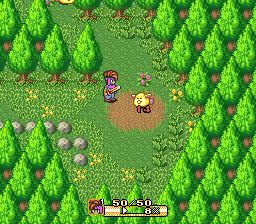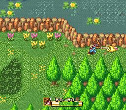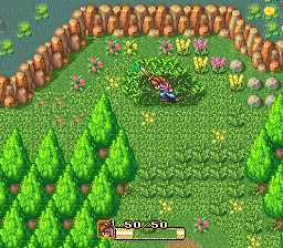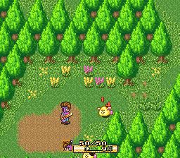 圣剑传说2 (Secret of Mana) 1993年作为第一款在任天堂16位主机SFC上登陆的圣剑传说系列,首先就以16兆的大容量吸引了玩家们的眼球。容量的提升并不仅仅意味着在画面和音效上质的提高,或者说游戏内容上的增加,也标示着更多的游戏创新元素的加入。整个游戏仍以《圣剑传说1》的游戏世界观为基础。但相对于《圣1》而言,游戏的主角增加到了三人,并且本作可以支持三人同时游戏。单人和双人游戏时,玩家可以用select键切换角色。可以说,多人游戏制的加入使得游戏趣味性得到了巨大的提升。在人物设计上,每个角色都有着自己的优势和劣势。比如男主角不能使用魔法,但是以物理攻击和武器技能升级速度为强项;女主角能使用恢复与效果辅助魔法,物理攻击却很一般。而小妖精则以攻击魔法见长,但是在战斗中要避免近身肉搏战。因此玩家在战斗中要根据不同情况灵活切换角色,使用其优势来巧胜。如果只是一味的硬碰硬的话很容易造成较大的损失。