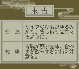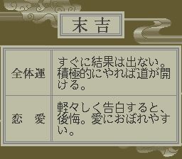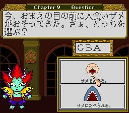 心理游戏1:恶魔的心理测验 (The Shinri Game – Akuma no Kokoroji) 是日本游戏制造商VISIT公司制作的一款SFC益智类游戏,于1993年开始发售。说是游戏,实际上就是一款算命的小软件,平时闲聊的八卦传闻、看八字、抽签、心理游戏等等。只可惜都是日文,一句话都看不懂。