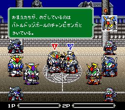 SD战斗躲避球1 (Battle Dodge Ball – Tokyu Gekitotsu) 是日本游戏制造商BANPRESTO公司制作的一款非常有趣的躲避球游戏,可以使用众多的SD英雄,并且每个人物都有自己必杀技,生动有趣的画面加上不错的手感,绝对是一款不错的休闲游戏。