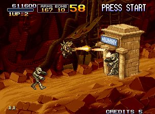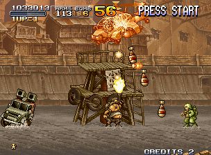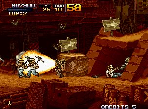 合金弹头是日本SNK公司推出的一系列2D横板射击过关游戏。Metal Slug系列是ARC历史上唯一可以用一个几乎不变的引擎连作9部的游戏。SNK系列是硬派射击ACT超A级作品,一部2D的ARC作品达到如此的程度才真正算得上登峰造极。自从MS1开始一直在进步,MS3到达了MS系列的巅峰,但是MS3的下一部MS4,几乎没有什么剧情可言,但是仍然受到欢迎。从MS6开始又推出了军校模式,更改了前几部只有打任务通关的设置。
