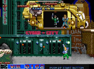 战斗边缘 (Cyber-Lip) 是一款横向卷轴游戏,1~2名玩家可以一起游戏,您必须穿过数个区域,并在每个区域结束时打败一位Boss。在途中,您可以拾取各种武器,并用它们对抗入侵者。通过摧毁特定的敌人,您可以获得一个“核心机器人”,当它接触到入侵者时会被摧毁。当时间耗尽时,会失去一条生命。