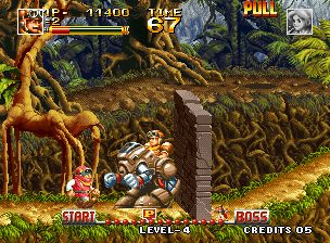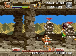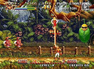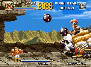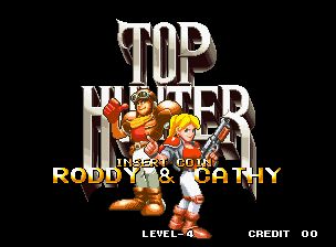 顶尖猎人 (Top Hunter – Roddy & Cathy) 主角有两个,一个是男的,好像坦克手一样的打扮(头上戴有挡风镜,但好像没有遮着眼),一个是女战士一样的,有护肩,他们在很多场景战斗,有森林,也有火山地带,特点是男的主角手会变长,可以远距离把敌人抓到自己前面再举起来丢出去,也可以伸长手来拉头上的环,可以掉下物品或者发动机关。女的是把护肩甩出去。有一关的BOSS是会扔出像水雷一样的有12个角左右的炸弹。
