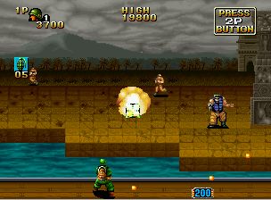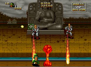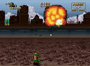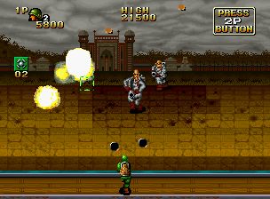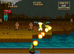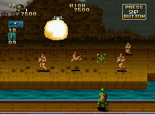 一款以越南战争末期为背景的第三人称动作射击游戏。它描绘了主角“西尔弗”和“布朗”之间的史诗般的战斗,他们奉命营救美国陆军科学家R.McCree博士和他的女儿南希。操作方式为8向杆和3个按钮。“A”是射击武器,“B”是投掷武器,“C”是按钮和左、右、对角线向上的组合,按钮和对角线向下的组合是为了避免捏伤。击败敌人会给你各种各样的物品,其中一些是强大的武器。另外,如果你救出克里斯,被敌人俘虏的帮手,他会和你一起战斗。