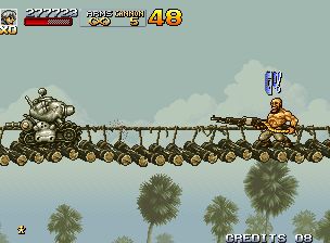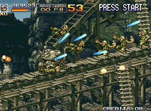 合金弹头4 (Metal Slug 4) 20XX年,网络恐怖行动震撼了全世界。以攻占各国军事系统为目标的计算机病毒“白婴(WHITE BABY)”诞生及其将会活动的声明在互联网上被公布……制作宣称可以攻破任何安全网络的“白婴”,正是自称为“阿马德乌斯~被神所爱之人~”的恐怖组织。接到声明而紧急召开的高科技恐怖活动对策会议上,呼吁歼灭恐怖组织“阿马德乌斯”,并决议强化各国的军事系统设施及设施安保……由于其为电脑网络上的战斗,还需投入能够歼灭恐怖组织“阿马德乌斯”及进行网络应对的特殊工作部队。特殊工作部队PF正是接受过训练以应对各个局面的特种部队。塔马和英里被指派去保护正在开发电脑病毒“白婴”的杀毒程式人员。马尔克、菲奥以及新的成员娜迪亚与崔佛等四名则直接执行歼灭恐怖组织“阿马德乌斯”的任务。