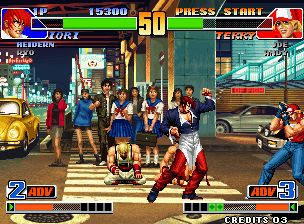 拳皇98 (The King of Fighters 98) 是由SNK发行的一款横版格斗游戏,于1998年7月23日发行,为《拳皇97》的续作。作为无剧情总集篇作品,该作除前作中的队伍角色外亦增加了新的参战角色,使可操作角色达到38人。在保留系统特色的基础上,进一步优化了对战系统,使游戏平衡性明显提升。