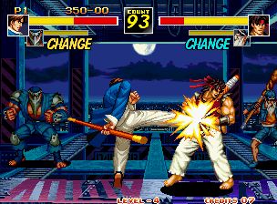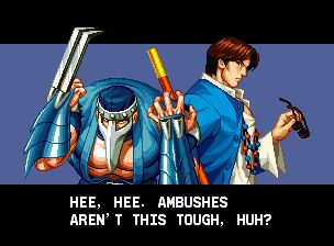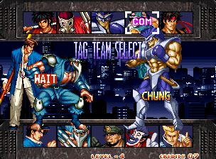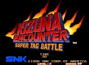 风云默示录2:超级组队战 (Kizuna Encounter – Super Tag Battle) 是风云默示录第二作,和前作一样,人物既可赤手空拳、也可以使用武器进行战斗。但系统方面改动很大,游戏采用2对2的组队对战模式。游戏中可以随意换人,但只要队伍中任何一个被打败就算输,这一点和拳皇是完全不同的,所以体力少的话一定要记住要及时的换人入场。游戏的画面和前作一样采用了放大缩小机能。当人物被打败时还会爆衫。除此之外,游戏的各方面表现也很优秀,是一款非常不错的格斗游戏!