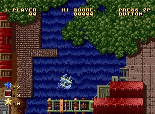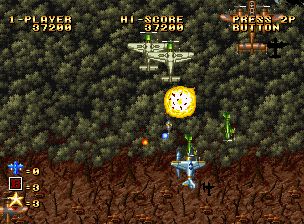 魔鬼飞行员 (Ghost Pilots) 是SNK利用其新型主板MVS所开发的首个正统纵版射击游戏,正是这块主板后来诞生了“饿狼传说”、“侍魂”、“拳皇”等著名对战格斗游戏系列,其家用型主机NEOGEO至今仍然称得上是家用机中的贵族。说实话SNK当时无论是技术力还是制作力比起CAPCOM来都差了一大截,这款游戏也实在不能算是什么大作,充其量是一个“飞翔鲛”的双打克隆产品,而且游戏还保持了SNK以往街机动作射击游戏的特点:角色比例大,手感迟钝。游戏中可以选择保险种类大概是唯一的特色了。本作后来以卡带形式作为NEOGEO的首发作品发售。