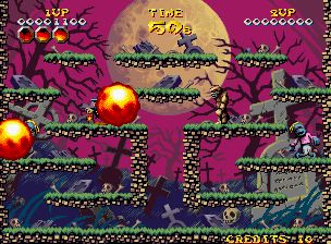 午夜噩梦 (Nightmare in the Dark) 一款来自街机的动作益智游戏,玩家在游戏中将扮演一名神秘的墓地守护者,使用火焰的力量将从墓地中爬出来的僵尸鬼怪全都赶尽杀绝。这款游戏有着很快的节奏与棘手的关卡和BOSS,是部成功的作品。